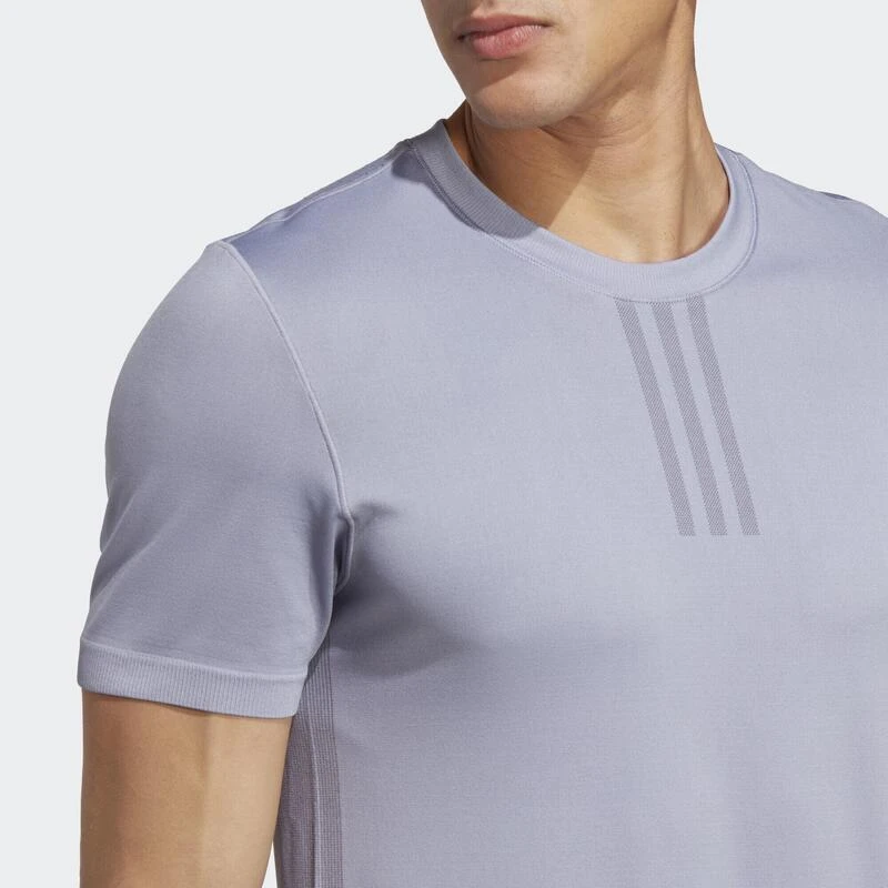 Dit yoga-T-shirt is perfect voor een soepele handstand of een stevig geaarde staande houding. adidas AEROKNIT en AEROREADY houden samen vocht onder de duim terwijl jij je in het zweet werkt met zonnegroeten en balansoefeningen. De naadloze ribgebreide stof voelt zacht aan en biedt bewegingsvrijheid voor al je houdingen.Dit product, gemaakt met een reeks gerecyclede materialen en ten minste 70% aan gerecyclede grondstoffen, vertegenwoordigt slechts één van onze oplossingen om te helpen een einde te maken aan plastic afval.