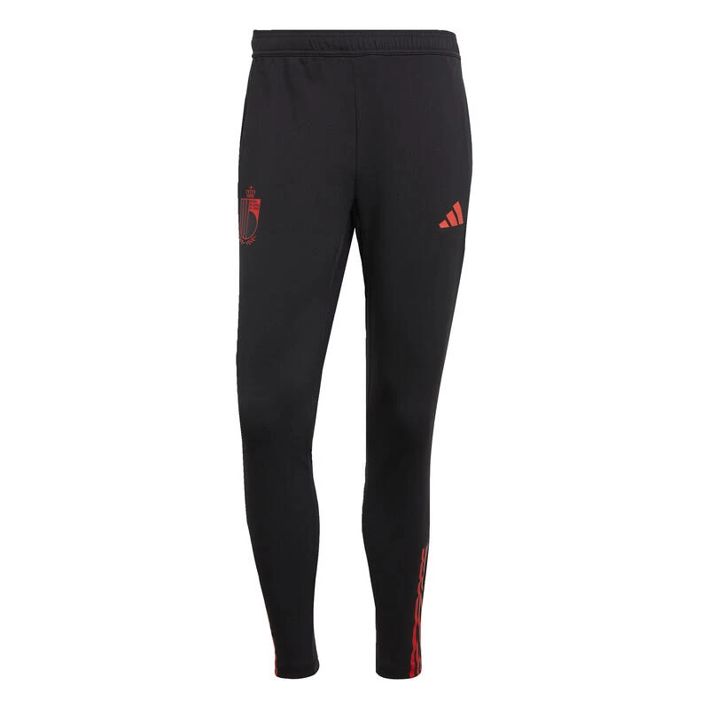 Een ademende trainingsbroek voor België-fans, gemaakt met gerecycled materiaal.