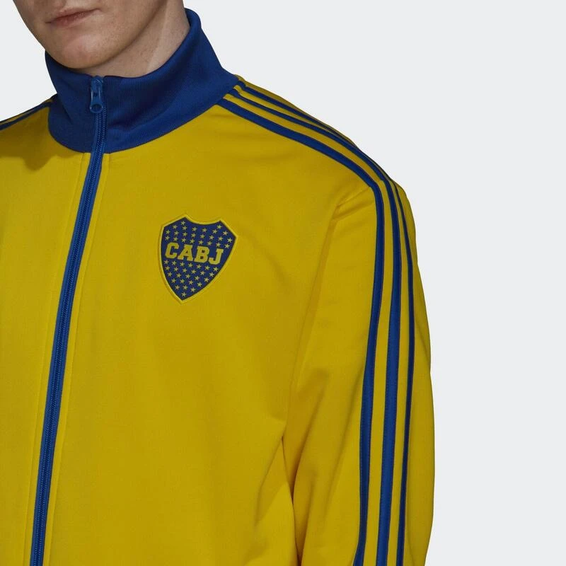 Een Boca Juniors trainingsjack, gemaakt met gerecycled materiaal.