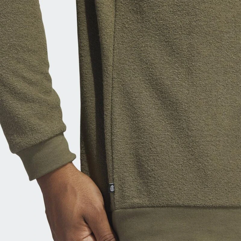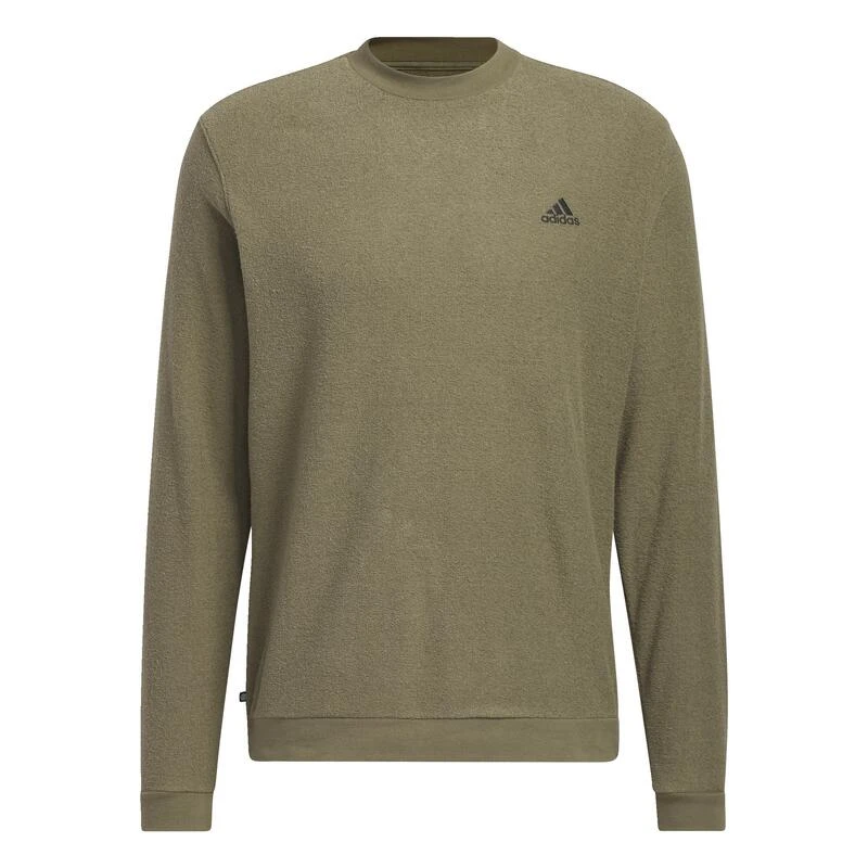 Houd jezelf zowel op als buiten de golfbaan warm. In dit behaaglijke adidas sweatshirt met ronde hals speel je comfortabel een koude ronde. De strakkere boorden houden de mouwen op hun plek, zodat niets je afleidt tijdens je swing. Draag er een T-shirt of poloshirt onder als het kwik nog verder daalt.Dit product, gemaakt met een reeks gerecyclede materialen en ten minste 60% aan hergebruikte grondstoffen, vertegenwoordigt slechts één van onze oplossingen om te helpen een einde te maken aan plastic afval.