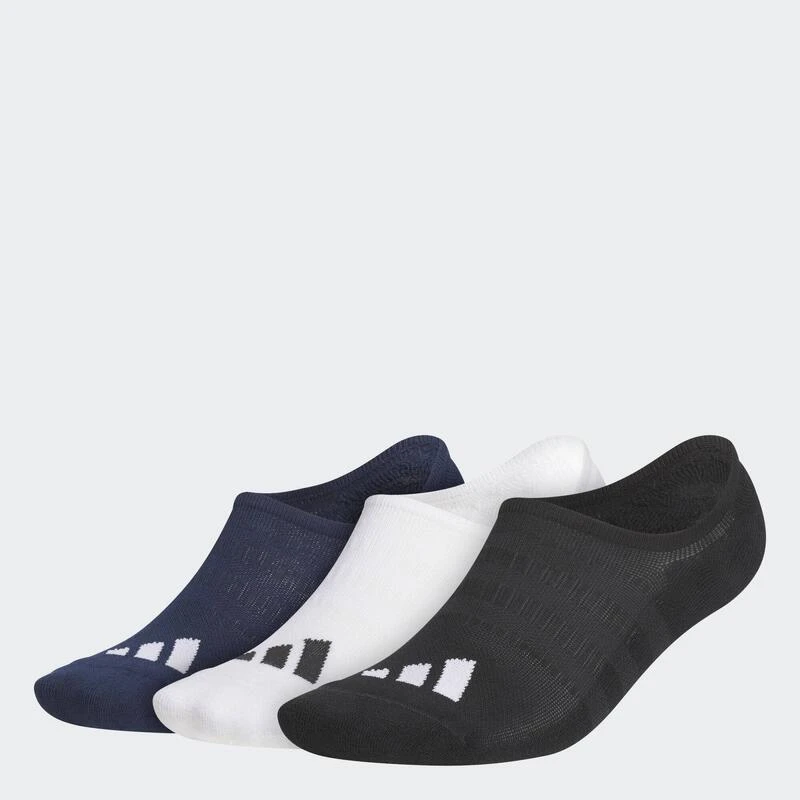 Drie paar onzichtbare golfsokken met een ondersteunende pasvorm.