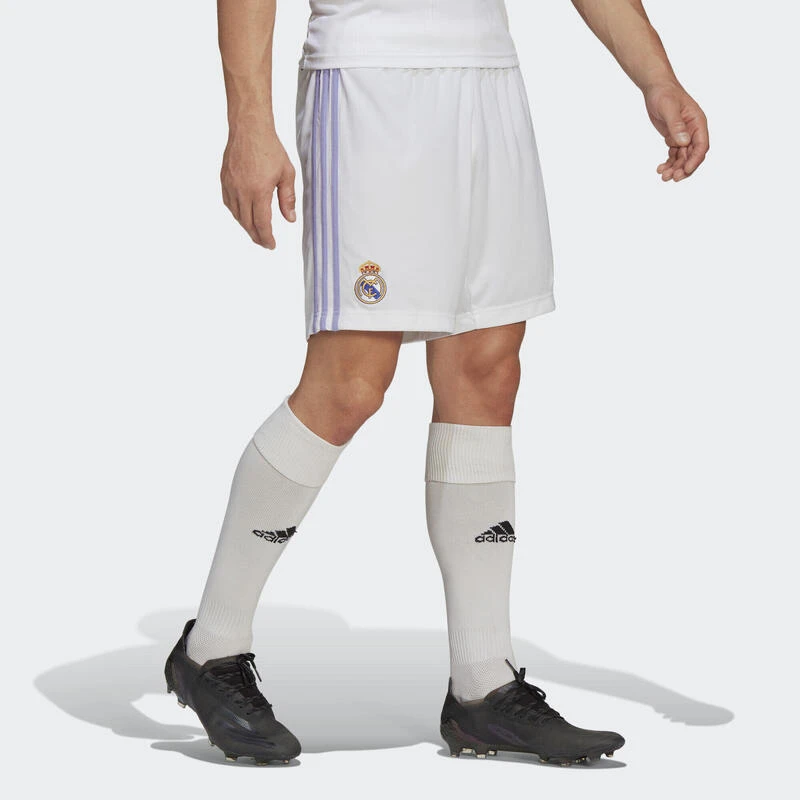 Een Real Madrid short voor supporters, gemaakt met gerecycled materiaal.