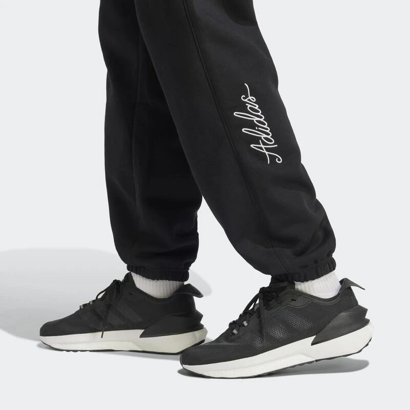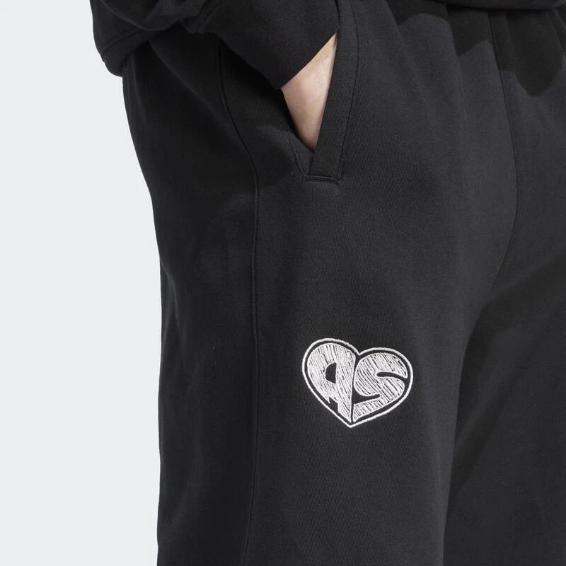 Tatoeages. Kunstige krabbels. Gedachteloos schetsen in de kantlijn. Er is één overeenkomst: het is allemaal een afspiegeling van wie jij bent. Net als deze adidas broek, die is geïnspireerd op vrije schetsen die persoonlijke stijl vieren. Hij is gemaakt van fleece met katoen die zo zacht en comfortabel is dat je ‘m nooit meer uit wilt trekken. Door de mid-rise pasvorm voel je je zelfverzekerd, en de elastische boorden zetten je schoenen in de schijnwerpers. Om de katoenindustrie wereldwijd te verbeteren werken we samen met Better Cotton. Better Cotton maakt de katoenproductie over de hele wereld beter voor de betrokken arbeiders, beter voor de omgeving waarin het groeit, en beter voor de toekomst van de sector. Better Cotton wordt ingekocht via een handelsketenmodel genaamd massabalans. Dit betekent dat Better Cotton niet fysiek te herleiden is tot eindproducten, maar dat Better Cotton Farmers wel profiteren van de vraag naar Better Cotton in volumes die gelijk zijn aan de volumes die we inkopen. Meer informatie vind je hier: bettercotton.org/learnmore